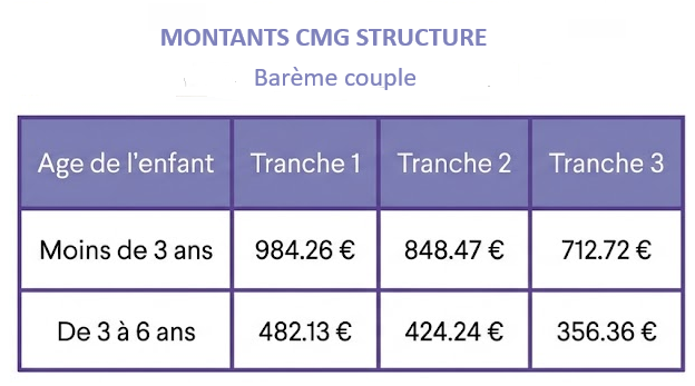 Le Complément de Mode de Garde (CMG) en mode 'Structure' est une aide versée par la CAF ou la MSA pour compenser une partie de vos frais de garde. Contrairement au mode classique, vous ne devenez pas l'employeur de votre intervenant :